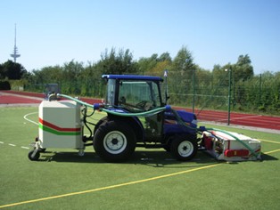Jsme česká společnost nabízející služby v oblasti strojního čištění umělých povrchů venkovních sportovišť a to jak suchou, tak i mokrou cestou. Jedná se o čistící zařízení nesené na kompaktním komunálním malotraktoru. Používáme pracovní nástavce německé firmy HÖRGER, jako nosný stroj používáme komunální malotraktor ISEKI TG.