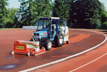 Čištění atletických drah je dost podobné mokrému čištění hřišť. Rozdíl je především v použití předního nástavce na traktoru, kde je osazena vysokotlaká rampa, kterou je pod tlakem stříkána čistá voda na znečištěný povrch dráhy a následně je odsáta do odpadní nádoby. Povrch je díky vysokému tlaku vody čištěn i hloubkově a pravidelným čištěním zlepšíme jeho vlastnosti a prodloužíme jeho životnost.